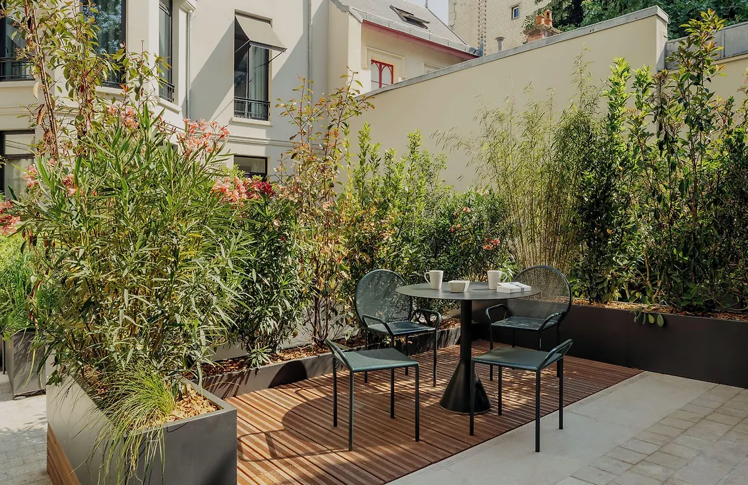 Some of the air-conditioned rooms of My Maison In Paris Invalides hotel face the garden, and comprise a balcony and a terrace. Some bathrooms have a walk-in shower, along with a dryer.
